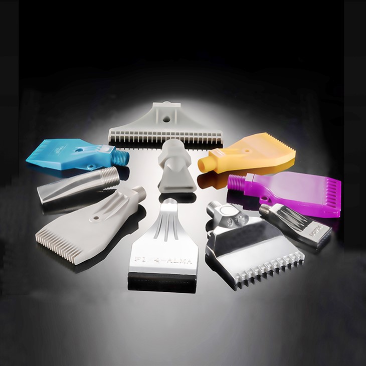 Die Windstrahldüse im F-Stil erzeugt einen effizienten fächerförmigen Luftstrom und wurde entwickelt, um die Integrität des Sprühmusters zu erhalten. Sie sind in Materialien erhältlich, die hohen Temperaturen standhalten, wie ABS oder Aluminiumlegierungen. Luftdüsen sind für 1/4'' BSPT-Anschlüsse geeignet und mit einem Positionierungsloch (ABS-Sprühdüse) ausgestattet, um für Luftschleieranwendungen nebeneinander montiert zu werden. Luftmesserdüsen aus Kunststoff können 7 bar Luftdruck reduzieren, bei diesem Luftdruck beträgt die maximale Betriebstemperatur 77 ℃. Windstrahl-Luftdüsen aus Aluminiumlegierung können einem Druck von 30 bar standhalten, bei diesem Druck beträgt die maximale Betriebstemperatur 250 ° C.